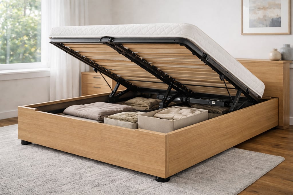 Descubre cómo funciona un canapé abatible articulado, cuánto espacio de almacenamiento ofrece y qué tener en cuenta sobre la motorización y el arcón.